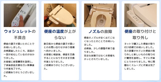 神戸市で対応可能な温水便座、ウォシュレットの修理サービスとなります。その他のトラブルやご相談に関しましてはお気軽に受付窓口までお問い合わせください。