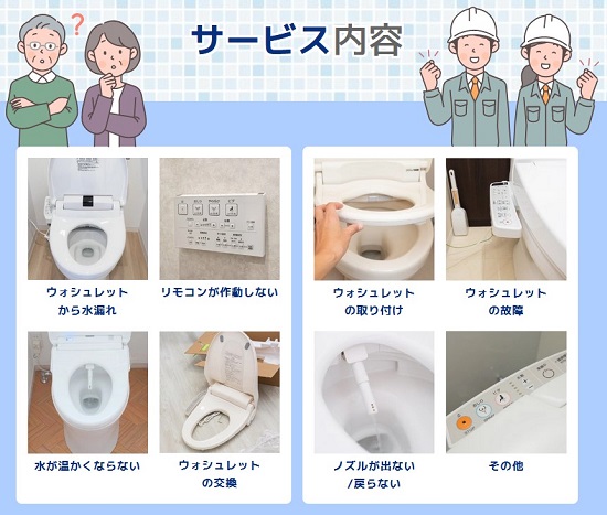 神戸市で対応可能な温水便座、ウォシュレットの修理サービスとなります。その他のトラブルやご相談に関しましてはお気軽に受付窓口までお問い合わせください。